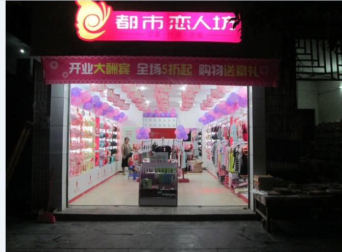 由于我们店刚选在这条街上,还没有什么内衣店,等我们店选好后,啪啪的一下子开了四家内衣店,其中一家叫都市恋人店就隔了一个店面。老板在吃晚饭很是担扰,长须短叹,开业也没敢通知朋友们前来观看,怕开业当天业绩惨淡。没脸见人,我说:我发现一个规律,一般挂好货,后能买七八百的,第二天买四五千不是问题。我们挂完货当晚就买了七百多块,第二天一早老板的哥们早早的送来了花篮。25早上九点准时开业,人不断的往内挤,将50平方米店面堆满,晚上吃饭时,老板就很高兴不断跟朋友推销我们都市恋人坊的品牌。