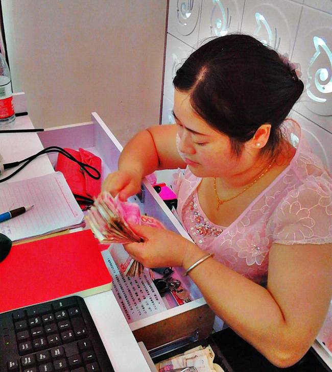 认真数钱的老板娘,开业业绩一共7389元,老板感言这个数字超呼她的预期,加盟都市恋人坊,果然没错!