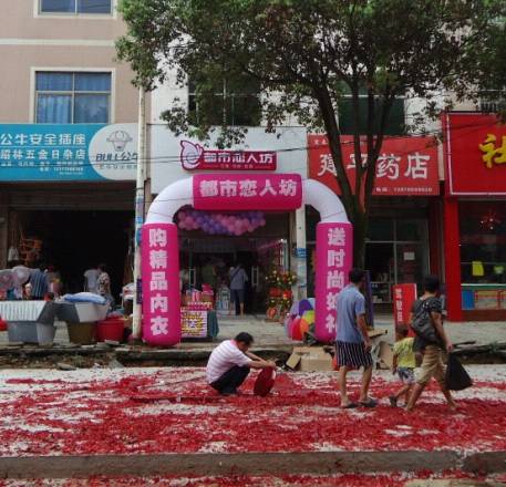 7月19号上午到达新田镇,与老板娘交谈中听老板娘说,她那位同学去年就在另一个镇开了都市恋人坊店,了解了都市恋人坊在她那边的经营情况,所以才决定今年在生小孩后,在自己家集镇街上开店。