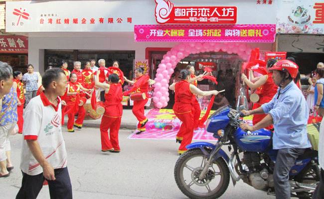 加盟商店位于南江一个小镇,加盟商自己有经营一个皮鞋店,坚强的老板娘,懂事能干的女儿,这是我对这个店铺的最初印象,8.16号下午赶到镇里,晚上开始挂货陈列,以及准备开业活动的一些事宜,跟加盟商进行了沟通和安排!第二天一大早就对,老板和帮忙的人员进行了培训,开始了一天的挂货和陈列!到下午五点,陈列基本完成,就有顾客,被我们漂亮的陈列所吸引,迫不及待的开始了自己的选购!当天我们就做了1700多的销售!开业当天,6点我们就开始陈列外场,还没有陈列完就开始了一天的销售,音乐响起,店铺人员开始了一天的忙碌,腰鼓队让我们的店里人员爆满,业绩做了5063元,老板对这个业绩还是比较满意的!