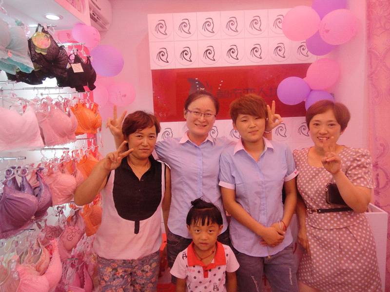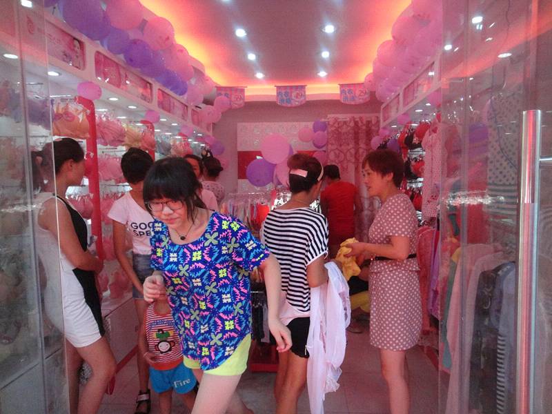 来看看我们可爱的加盟商吧。脚步要快,屋里的顾客等着要睡衣呢!速度!美女,你穿这件绝对合适,即显身材有提气质,就拿这件吧。