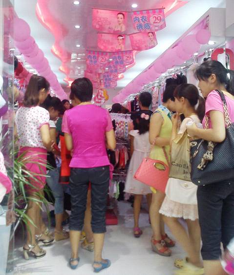俗话说,早起的鸟儿有虫吃,我们不到7点就开始准备,大家分配好各自的任务,满怀信心的迎接第一笔单。铺上地胶,充起拱门,大红色横幅铺在台阶上,海报贴在拱门两边,将特价品全部展示到店外,礼品车上展示出精美的礼品,尤其是最引人注目的彩虹伞。活动主题:换季促销都市恋人坊大型特卖会。活动内容:夏款打九折,特价文胸打八折,包括特价品在内,购物满48元就送礼品并赠送恋人卡。这样打折送礼同时进行并且处在换季阶段的活动让我们自己都心动,真正的惠动全城啊。