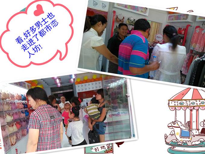 小溪河镇位于安徽凤阳,历史上赫赫有名的“包产到户”的先锋小岗村就在小溪河镇。我在18日下午五点到达镇上,才发现,这是镇上唯一一家内衣专卖店。当地大部分人都是在超市或者在早市的地摊上买内衣,要买好一点的,还要跑到凤阳县城去。都市恋人坊的入驻无疑成为了这个小镇上一道亮丽的风景线。