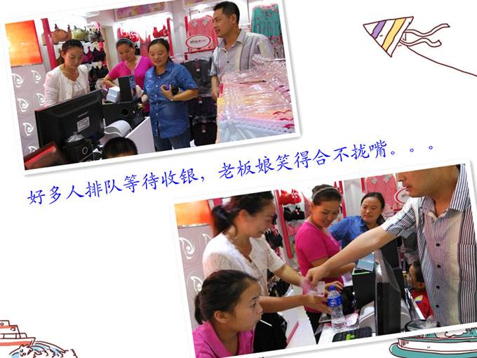 加盟商邹姐的兄弟姐妹们早就在督导来之前就把货都挂好了,我就综合他们的意见,在他们的配合、帮助下很快就把陈列和店内的布置搞好了。看看我们的成果吧。