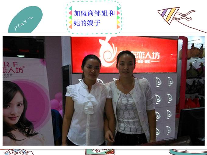 这样主动、热情的加盟商,一定可以渐渐打响都市恋人坊在小溪河的知名度,迎来越来越多的顾客,生意越来越红火的。让我们看看漂亮的老板娘邹姐和她的嫂子与督导的合影吧。